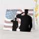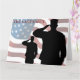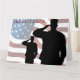 Em homenagem aos nossos membros falecidos das forças armadas. Saudando soldados com a bandeira americana ao fundo.
