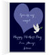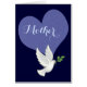 Esta imagem é de um carregando branco de pomba uma folha verde voando no ar. O coração está disposto no cartão com uma inscrição. Foi adicionado um fundo azul escuro. Personalize com suas próprias palavras. Um belo cartão para a mãe.