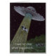 Um lápis a cores de uma vaca infeliz sendo raptada por aliens em um disco voador em uma noite escura e estrelada. A manada assustada se abraça ao fundo.