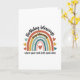 Um cartão de aniversário simples, mas vibrante, explode com cor e energia positiva! No coração da design está um arco-íris, arquejando graciosamente através da carta. Suas listras são uma deliciosa paleta de cor laranja quente, amarelo alegre, chato e rosa bonito. Adicionando um toque de zumbidos, pequenos pontos são espetacularmente intercalados entre algumas dessas listras coloridas. Acima do arco-íris, lê-se a mensagem sincera, bênçãos de aniversário e continuar florescendo, sugerindo crescimento e bons desejos. Sob o arco-íris, está inscrito outro sentimento adorável, onde sua alma se sente mais viva, convidando o receptor a abraçar suas paixões. Para completar a cena alegre, pequenos corações na coordenação de tons, amarelos e laranja estão espalhados articamente ao redor do arco-íris, acrescentando pop extras de amor e celebração.