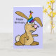 Hilarious cartoon bunny rabbit design. He's full of personality with one ear up and one ear flopped and has a birthday hat.