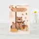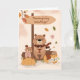 Uma doce carta de Ação de Graças que apresenta uma cena acolhedora de outono na floresta com um urso num cachecol a beber algo quente, uma raposa enrolada nas folhas e um ratinho estrelado numa abóbora. O cartaz de madeira diz "Saudações de Ação de Graças" para um toque sazonal suave. Com cores de queda suaves e uma sensação de campo de algodão, esta carta é uma maneira pensada de enviar desejos calorosos, gratidão e conforto pacífico na Ação de Graças.