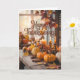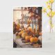 Cozy Autumn Pumpkin and Candle Mesa Scene.Envie desejos de feriado quente com esta maravilhosamente rústica carta "Feliz Dia de Ação de Graças", com um confortável cenário de mesa de outono adornado com pequenas abóboras, velas brilhantes, varas de canela e folhas coloridas de outono. Perfeito por compartilhar gratidão e amor com amigos, família e colegas de trabalho, este cartão de saudação sazonal captura o coração das reuniões de outono. Os tons calorosos e o convite à estética da fazenda fazem com que seja ideal para emparelhar com mensagens calorosas escritas à mão para celebrar a estação do agradecimento.