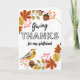Dando Obrigados, cartão de saudação de Ação de Graças para um namorada maravilhoso. Personalize a frente da placa como quiser. Design de coroa do outono com várias folhas, bolotas, bagas e uma ave. Design copyright © Shoaff Ballanger Studios, 2022.