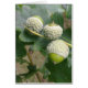 Cartão com fotografia de três bolotas verdes e folha de carvalho