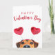 Ilustração de animal de estimação fofo e feliz no Dia dos Namorados com um cachorro curioso usando uma faixa de cabelo em forma de coração vermelho. Saudação de feriado sazonal escrita em letras modernas de tipografia.