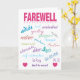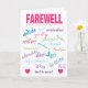 Diga adeus em várias línguas! Este cartão de boas-vindas cor-de-rosa brilhante é perfeito para colegas ou amigos que saem para uma nova aventura. Quer se trate de férias, reforma ou um novo emprego, desejo-lhes boa sorte com este cartão de excelente.