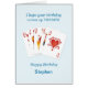 Um cartão de aniversário para alguém que ama jogar cartas. Uma verdadeira descarga de corações e as palavras "Espero que o seu aniversário chegue aos trunfos". Adicione um nome para personalizar este cartão divertido.