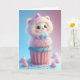Cartão Adorável gatinho branco preparando cupcakes em bra