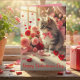 Cartão Adorável Gatinho Fofo com Rosas Dia dos Namorados