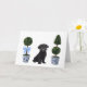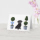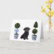 Estas placas de saudação apresentam um retrato de aquarela de um filhote Affenpinscher sentado entre dois topiários do estilo chinoiserie.
