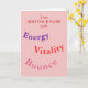 As afirmações de saúde são muito boas. Palavras de saúde para si próprio ou como estímulo à cura para um amigo ou familiar que viva com uma doença crônica. As palavras atuais no cartão são Energy, Vitality Bount. Você pode substituir essas palavras por quaisquer palavras de saúde. Se for para um amigo, por favor verifique se as suas palavras de encorajamento não vão soar como a sua recusa ou a pressão para que recuperem. Personalize o cartão imprimindo o nome do seu amigo ou membro da família. Você também tem a opção de fazer login no Zazzle e personalizar a placa para torná-la ainda mais seu próprio design. Este cartão foi concebido por uma PWME (pessoa com Encefalomielite Miálgica). É especialmente adequado para quem usa a Lei de Atração para a saúde, cristãos que falam saúde para seu corpo, estudantes de NLP, entusiastas da hinoterapia e interessados na ciência da psiconeuroimunologia que nos diz que podemos influenciar nossa saúde com nossas palavras e pensamentos. As afirmações de saúde estão em fundo rosa. Substitua as instruções por sua própria mensagem pessoal especial para enviar o cartão diretamente. Certifique-se de marcar como presente. Ou apague as instruções para comprar-lo vazio.