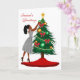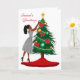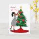 Celebrate the holiday season with this delightful Season's Greetings card featuring an African American woman elegantly dressed in a silver sequin dress, placing a bulb ornament on the Christmas tree. This unique Black woman Christmas card is an ideal choice for sharing joy with family and friends. Available with personalized options, you can change the text on this greeting card to suit your needs.