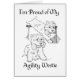 Diga ao mundo o que você sente sobre aquele Terreiro Branco da Terra Ocidental especial que se destaca em Agilidade! Estou orgulhoso da minha agilidade Westie! Criado da minha trabalho de arte original de caneta e esboço de tinta, esta design está disponível em roupas, novidades e presentes!