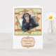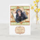 Um cartão de aniversário humorístico. Recursos chimpanzés em profundo pensamento. Na primeira saudação lê-se: "Agora, o que eu tinha que lembrar?" Dentro saudando as leituras, Oh Sim... É seu aniversário!
