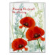 Os papagaios são a flor de agosto, e este cartão tem três papoilas vermelhas na frente com um fundo de gramíneas mistas. Cartão muito bonito para alguém nascer em agosto.