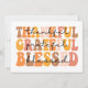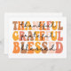 O design intitulado "Agradecido, Grato, Abençoado" é uma representação vibrante e edificante da temporada de Ação de Graças. Ele apresenta três palavras-chave, cada uma expressando um sentimento de gratidão e positividade.