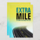 Expresse gratidão pelo esforço extra do seu funcionário com este cartão único que apresenta a mensagem "Extra Mile (É onde sempre o encontramos)". O fundo inclui um padrão colorido de meio-tom em azul claro com uma ilustração de estrada que leva ao horizonte. O verso pode ser personalizado, mas tem esta mensagem: "Obrigado por ser o tipo de funcionário que consistentemente dá mais, trabalha mais duro e se esforça para ir além do que é esperado. Seu trabalho árduo, dedicação e compromisso contínuo com a excelência são reconhecidos e genuinamente apreciados. OBRIGADO".