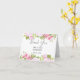 Cartão de agradecimento de casamento no jardim de rosas com belas grinaldas de rosas cor-de-rosa emoldurando os detalhes personalizados do seu agradecimento de casamento em texto elegante. Concebido por Thisisnotme©