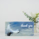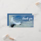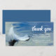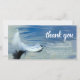 Cartão de agradecimento de funeral com pena de anjo/pomba branca na água e nota de agradecimento personalizada.