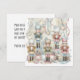 Envie um toque de charme clássico de Natal com este cartão de quebra-nozes em aguarela vintage. Com quebra-nozes pastel rodeados por enfeites, fitas e flocos de neve, é perfeito para espalhar alegria nostálgica de Natal.
