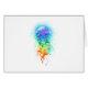 Água-viva grande, iridescente, desenhada artisticamente, brilhante, com longos tentáculos em branco, pintada sobre fundo de aquarela multicolorido. Água-viva arco-íris.