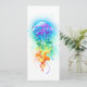 Água-viva grande, iridescente, desenhada artisticamente, brilhante, com longos tentáculos em branco, pintada sobre fundo de aquarela multicolorido. Água-viva arco-íris.