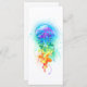 Água-viva grande, iridescente, desenhada artisticamente, brilhante, com longos tentáculos em branco, pintada sobre fundo de aquarela multicolorido. Água-viva arco-íris.