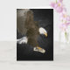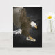 Águia caída com diploma de graduação em seus talões sobre fundo de rocha negra.