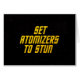 A frase "ajustou atomizadores para stun" em rotulação amarela impressionante, influenciada pelo conceito o mais famoso da ficção científica de todas as vezes. Esqueça sobre os phasers e o espaço, vaping é a fronteira final! Se você ama o ecig, o scifi e o humor, você não quer faltar para fora neste.