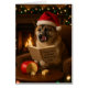 Humorous Christmas card featuring an Akita dog reading 'The Cheese Tax at Home Regulations 2025' whilst trying to resist the urge to eat the cheese that someone's left on the table right in front of its nose!