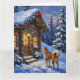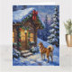 Cartão Akita Dog Christmas Log Cabin Holiday