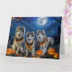 Libere o espírito assustador com esta design sombria do Dia das Bruxas apresentando um bando de cachorros sob um céu escuro e iluminado, cercado por morcegos voadores e abóboras brilhantes. Perfeito para aqueles que amam um toque de diversão terrível com seus amigos peludos!