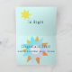 Um cartão de Parabéns com estrelas e átomos e um smiley face. O texto é personalizável. Adequado para graduações, realizações científicas e aniversários. Aguarde um futuro brilhante!