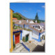Aldeia mediterrânica de aquarelas com casas brancas e azulejos vermelhos com vista à rua em Portugal