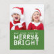 Uma FELIZ moderna E um CARTÃO BRILHANTE da FOTO do FERIADO com um divertimento lunático projetam pelo desenhista Elke Clarke© para a galeria do monograma. Design de texto corajoso na pia batismal da fita em um fundo verde. ADICIONE SUA PRÓPRIA FOTO NO LUGAR DA FOTO DA AMOSTRA E USE O TEXTO DA AMOSTRA COMO SEU CUMPRIMENTO OU COMPO SEUS PRÓPRIOS. INTEIRAMENTE CUSTOMIZÁVEL.