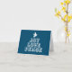 Cartão Alegria amor paz pombo branco árvore de natal azul