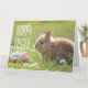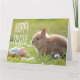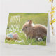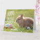 Um coelhinho da Páscoa fofo, com uma pequena cesta de ovos pastéis, está aqui para desejar à sua família e amigos uma Páscoa feliz e alegre.