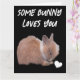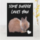 Algum coelhinho ama você com um pequeno coelhinho bebê marrom aconchegado prestes a dormir no mundo dos sonhos sabendo que tem algum coelhinho que os ama. .