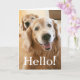 Este cartão de saudação alegre apresenta uma fotografia de um sorridente cão que recupera o ouro, juntamente com a palavra Olá!