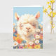 Este delicioso cartão de saudação apresenta uma alpaca feliz cercada por um campo de flores silvestres coloridas, irradiando alegria e calor. O estilo inspirado em aquarela e as cores pastéis moles adicionam um toque brilhante e suave à ilustração, fazer-a perfeita para aniversários, celebrações ou simplesmente enviando boas vibrações. Com sua adorável expressão e pano de fundo floral, este cartão alpaca é ideal para amantes de os animais e qualquer pessoa que aprecie arte bonitinha, inspirada na natureza. Uma escolha encantadora para crianças, berçários e decoração química.