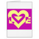 Um design de logotipo gráfico, feito sob medida. AMOR em amarelo em roxo.