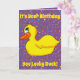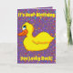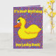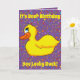 Um pato amarelo bonito compo este cartão do divertimento. Customizável assim você pode adicionar seu próprio texto e mudar a cor do fundo.