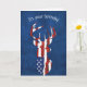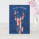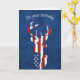 Silhueta de veados com uma design de bandeira americana em couro azul para um aniversário. O texto é editável.