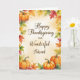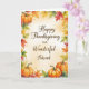 Um design de Ação de Graças sincero para um amigo especial, com abóboras de outono e folhas coloridas de outono em tons sazonais quentes. O sentimento de frente expressa gratidão e amizade, com uma dentro de mensagem correspondente que continua o tema das bênçãos e memórias queridas. Perfeito para enviar desejos de feriado a um querido amigo que significa tanto.