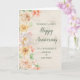 Feliz cartão de aniversário de casamento para um amigo e sua esposa com elegantes flores de aquarela pastel e primavera verde e um padrão de madeira rústica.
