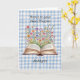 Marque uma jogada com este personalizado aqui é para o próximo capítulo com um belo livro aberto com flores silvestres e um gingham azul claro. Isso seria uma maneira doce de dizer adeus, boa sorte, e te ver em breve. Um cartão exclusivo para um amigo que se afasta.