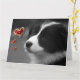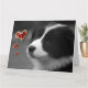Diga "Eu te amo" a um amante de cachorros da maneira mais fofa possível com este cartão de cachorrinho da raça Border Collie super bonito com corações vermelhos e dourados e texto personalizável. Disponível em 3 tamanhos. Imagem do cachorrinho exclusiva da Zazzle.