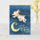 Uma vaca de cor-d'água saltando sobre a cor d'água da lua fica bem logo que as crianças recebem o cartão. Design em tons de branco, castanho, amarelo com um céu azul-preto escuro. Atualmente, lê te ama à lua e de volta ou você pode personalizar com suas próprias palavras ou nome. © Impressão exclusiva de aquarela por Sarah Trett para www.mylittleeden.com