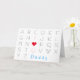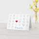 Um cartão personalizado, personalizado, fofo, na moda, adorável, dia de os pais / aniversário para Pai, que você pode personalizar com sua mensagem personalizada. Você pode até substituir "Pai" na frente, com o que você chama de seu Pai - Papa, Pa,... Recursos em uma fonte legal e moderna / script / tipografia, os alfabetos ingleses A-Z, com I 'coração' U no meio. Você pode personalizar as saudações na dentro do cartão, para dia de os pais, aniversário, natal e muito mais. Um cartão bonito para Pai do seu leito, a maçã do seu olho. Basta digitar o texto personalizado, visualizá-lo no dentro da placa e pedido.